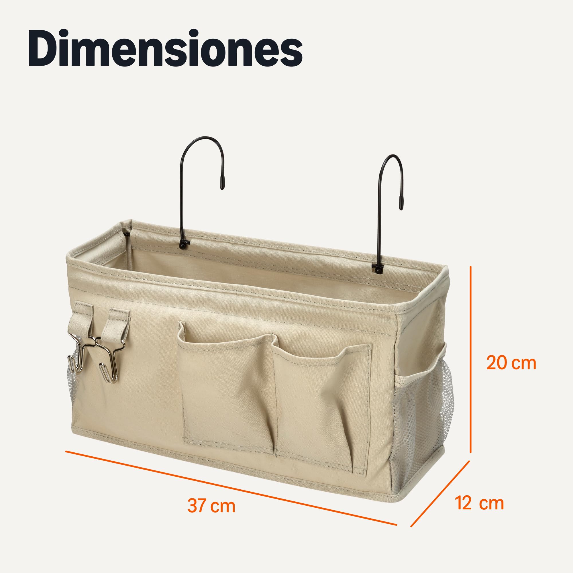Organizador de almacenamiento colgante para mesita de noche, 11,98 x 37 x 19,98 cm, M, color lino